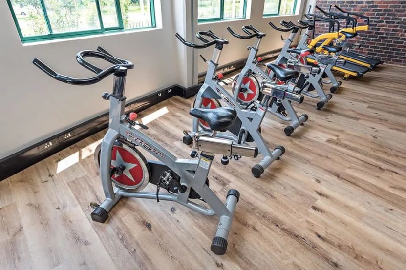 作为始终专注于健康环保地材的领导品牌,小蓝鲸石晶地板在健身房 …