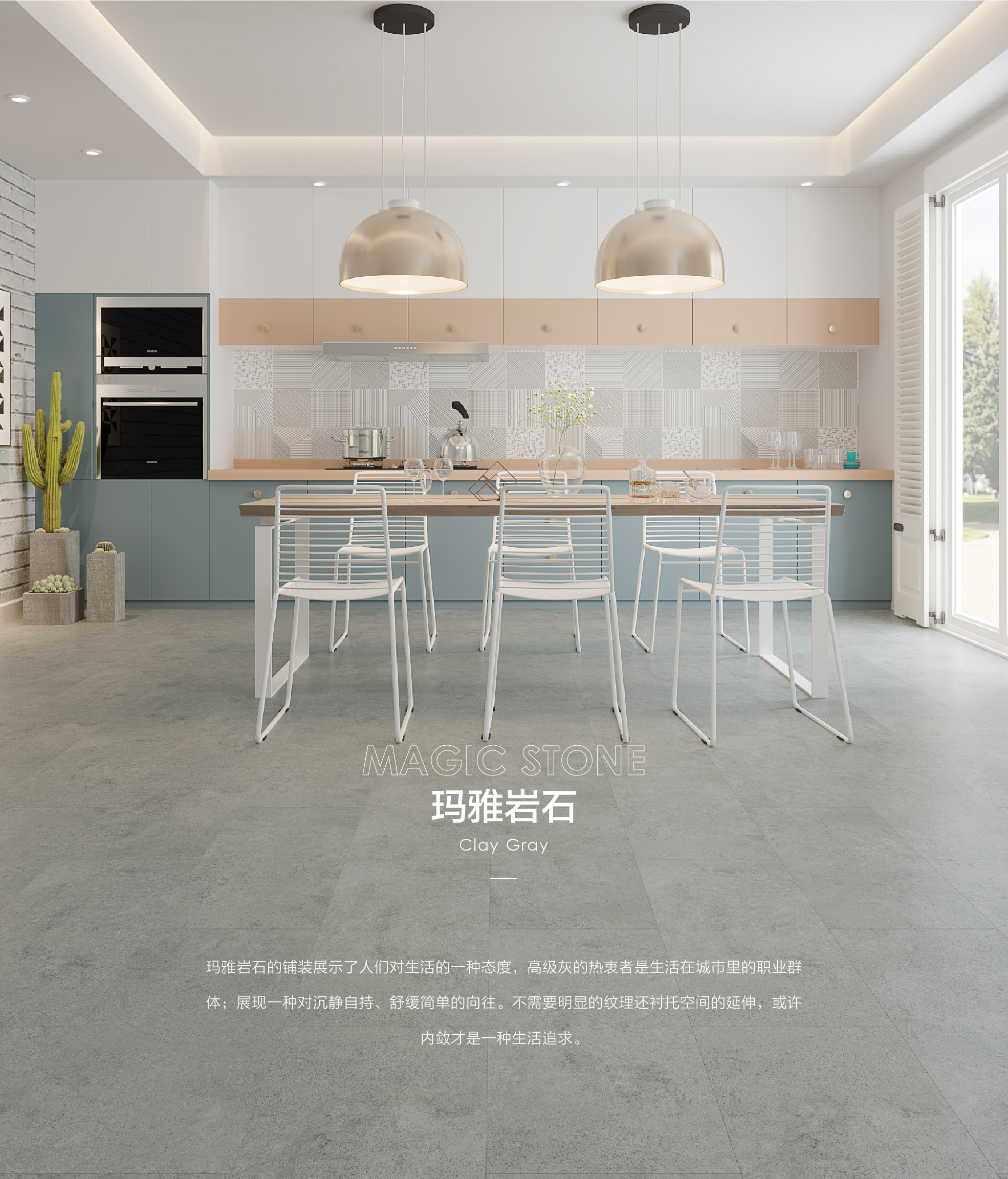 玛雅岩石的铺装展示了人们对生活的一种态度,高级灰的热衷者是生活在城市里的职业群体;展现一种对沉静自持、舒缓简单的向往。不需要明显的纹理还衬托空间的延伸,或许内敛才是一种生活追求。